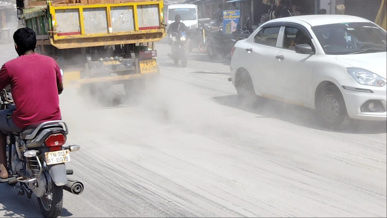 இதனால் வாகன ஓட்டிகள், வியாபாரிகள், பொதுமக்கள் கடும் சிரமத்திற்கு ஆளாகினர். அதிக பாரத்துடன், தார்பாய் கொண்டு மூடப்படாமல் கொண்டு செல்லப்படும் சாம்பல் கழிவு லாரிகள் மீது காவல்துறை உரிய நடவடிக்கை எடுக்க வேண்டும் என கோரிக்கை எழுந்துள்ளது.